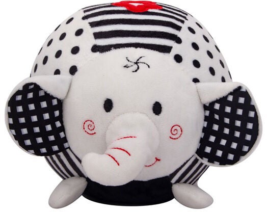 Aktivitetsbold fra Hoogar med kontrasterende farver. Den har en rangle og knitrende lyde. Bidrager til dit barns udvikling. Anbefalet alder: Fra nyfødt.