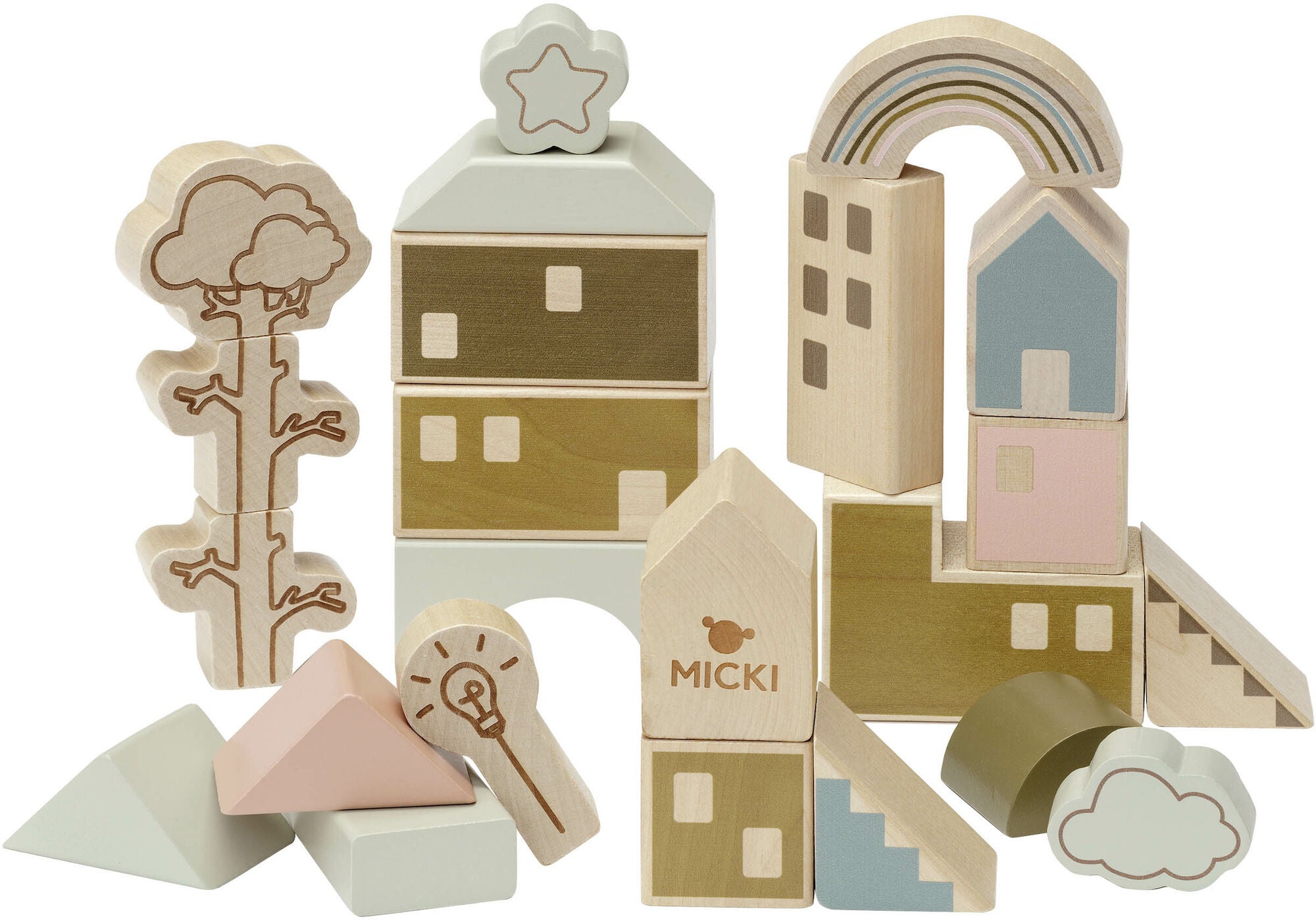 Micki er kendt for sin høje kvalitet og fokus på bæredygtighed, hvilket gør disse temaklodser til et sikkert valg for dit barn. Klodserne er ideelle til både individuel leg og leg med venner og familie, hvilket gør dem til en fantastisk gave til enhver lejlighed.