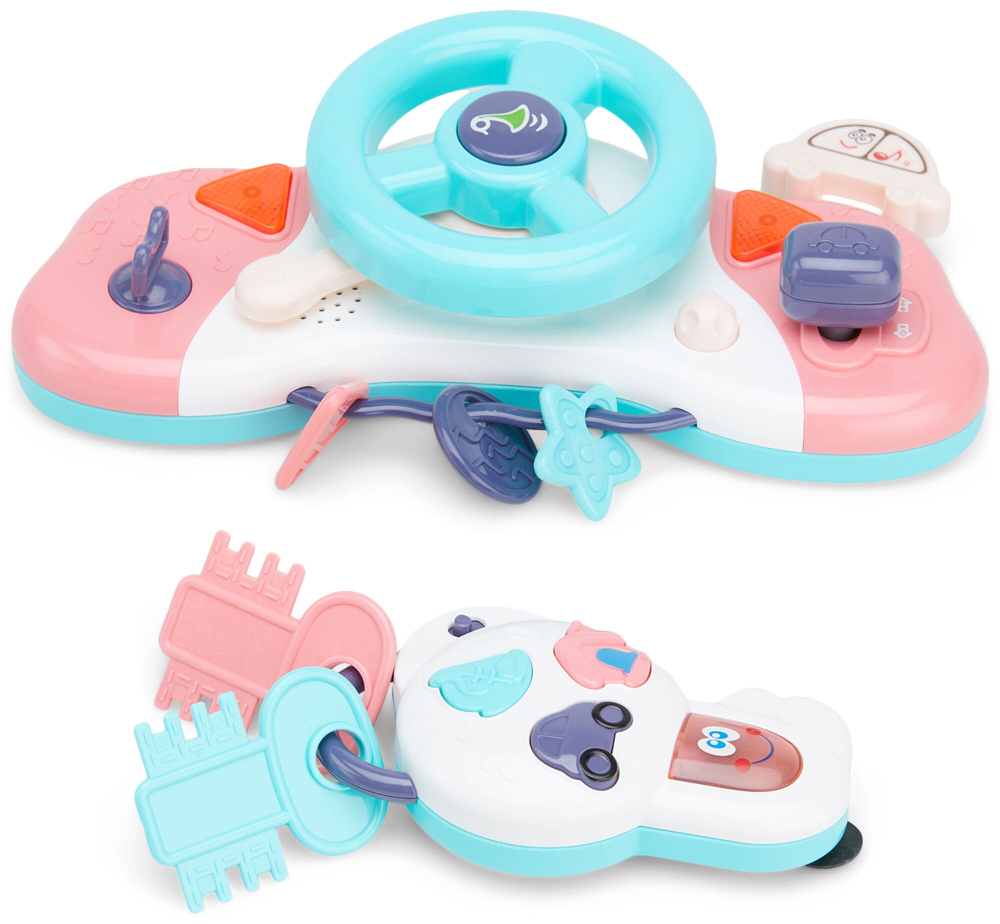 Rat og bilnøgler fra Cloudberry Castle. Dette farverige legetøj har mange forskellige knapper, der kan underholde dit barn i timevis. Rattet har spændende lyd- og lysfunktioner. Et sjovt sæt til de mindste bilfanatikere! Anbefalet alder: Fra 1 år.