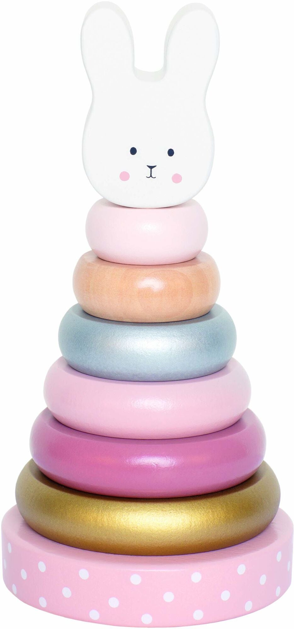 Sųdt stablelegetųj fra Jabadabado med forskellige, lyserųde farver. Det har stabelbare ringe som kan placeres ovenpå hinanden. Legetųjet fremmer også evnerne til at tęlle og til at adskille farver og stųrrelser fra hinanden. Perfekt til tręning af dit barns finmotorik. Anbefalet alder: Fra 12 måneder.
