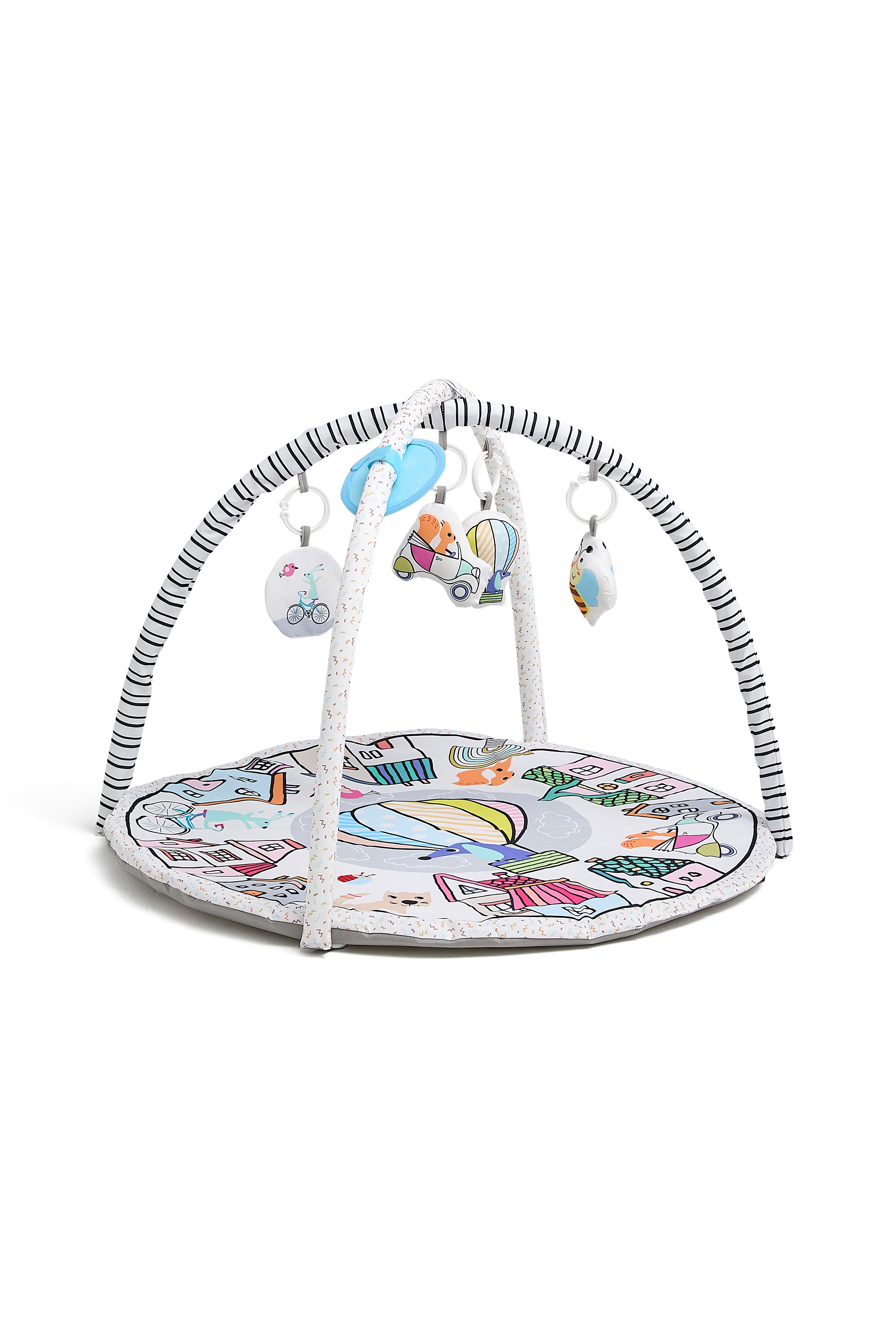 Blødt aktivitetscenter fra Beemoo med søde bamser. Perfekt til stimulering af barnets udvikling. - Let at tage med på farten. - Perfekt til både leg og indlæring! - 5 stykker hængelegetøj medfølger. - Sjove farver og et spejl til visuel stimulering. - Testet i henhold til den europæiske sikkerhedsstandard EN71. - Anbefalet alder: Fra nyfødt. - Materiale: 100 % % polyester.
