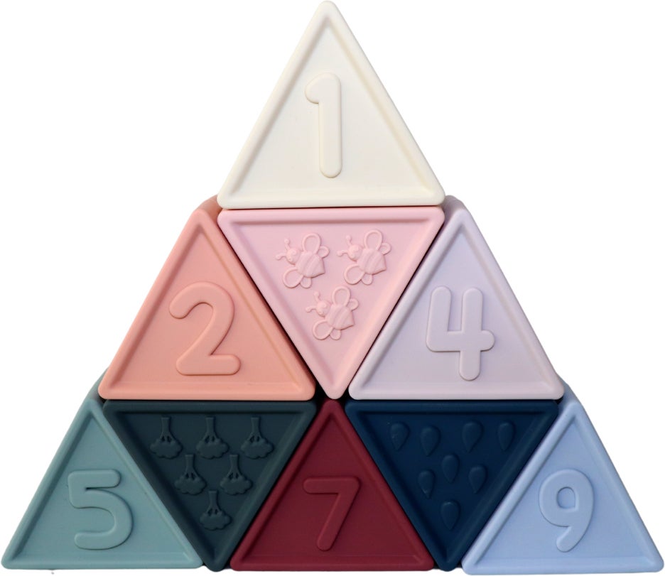 Tælleklods fra Jellystone Designs med farverige motiver. Perfekt til at træne dit barns finmotorik og tælleevner. - Klodserne er nummererede med tallene 1 til 9 med en modsvarende tekstureret illustration på den ene side. - Perfekt form og vægt for små hænder at udforske, sætte på rad og række, balancere og stable. - Tåler opvaskemaskine. - Mål: H 18 x B 4 x L 18 cm. - CE-mærket. - Anbefalet alder: Fra 12 måneder. - Fødevaregodkendt silikone.