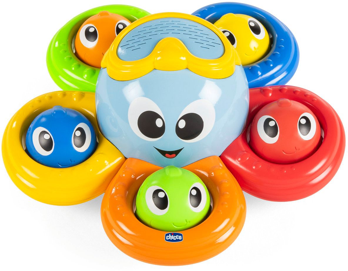 Billy the Octupus badelegetųj fra Chicco. Perfekt til en sjov stund i badet. - Flyder i vandet. - Sprųjter med vand. - Sjove farver. - Underholder og stimulerer dit barn. - Anbefalet alder: Fra 6 måneder.