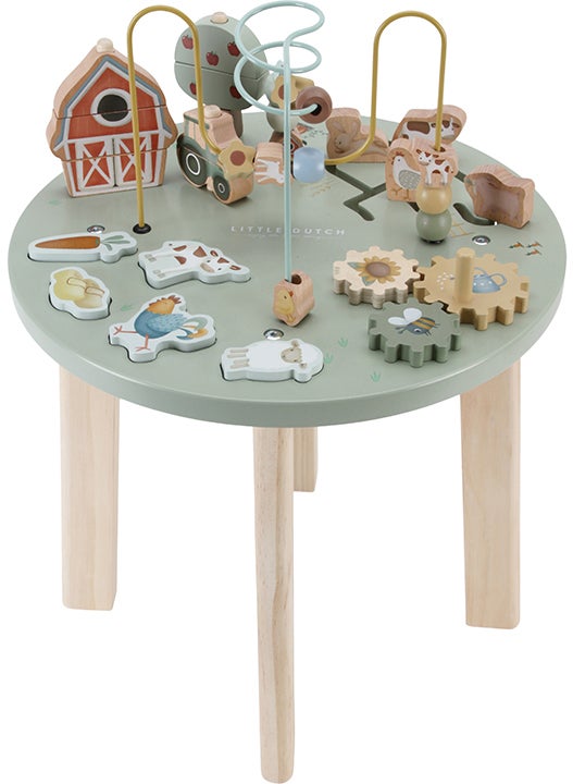 Fint aktivitetsbord fra Little Dutch i flotte farver med mange sjove aktiviteter. Perfekt til træning af dit barns koordination og finmotorik. - 5 aktiviteter at udforske. - Hjul med perler. - Roterende tandhjul. - Puslespil. - Formgenkendelse. - Bondegårdstema. - Udvikler kognitive og finmotoriske færdigheder. - CE-mærket. - Anbefalet alder: Fra 12 måneder. - FSC-certificeret træ.