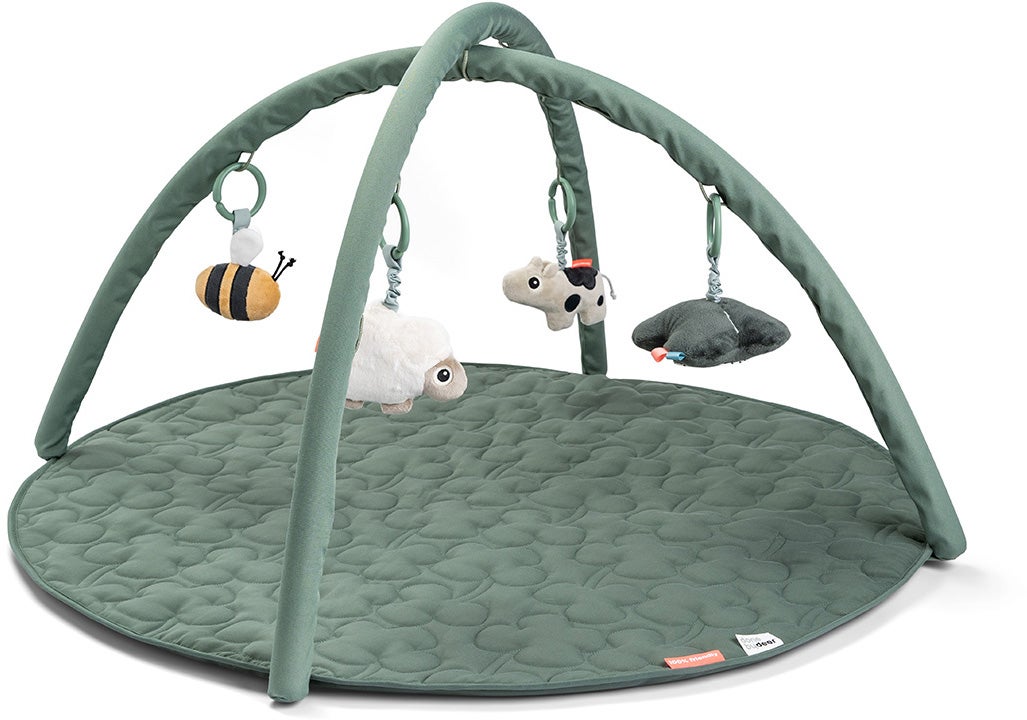 Tiny Farm aktivitetscenter fra Done By Deer. - Der medfølger 4 stk. hængende legetøj. - Blød kvalitet. - Sjove farver og et spejl til visuel stimulering. - Raslende og knitrende lyde. - Aftageligt legetøj. - Stimulerer dit barns sanser. - Anbefalet alder: Fra nyfødt. - Legetæppe: 100 % polyester. - Legetøj: 80 % bomuld, 20 % polyester. - Fyld: 100 % polyesterfiber.