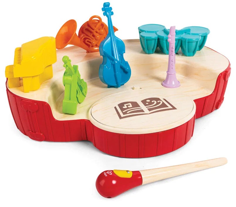 Orkester fra Hape med et inspirerende design. Det har en dirigentpind, der kan opbevares indeni. Perfekt til den lille musikant. - Skift mellem forskellige musiktilstande. - Automatiske melodier og præstationstilstande for et orkester, du dirigerer! - 5 orkesterinstrumenter. - Skifter musik ved hjælp af dirigentpinden. - CE-mærket. - Anbefalet alder: Fra 3 år. - Batterier medfølger.