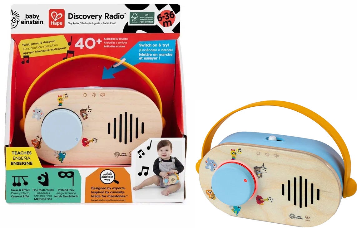 Fin legetøjsradio fra Hape med et inspirerende design. Den har en drejeknap, som man drejer på for at udforske forskellige melodier og lyde, og et fleksibelt håndtag, så det er lettere for små hænder at holde fast. Perfekt til at kombinere leg med læring. - Fleksibelt håndtag. - Justerbar lydstyrke. - Let at tage med sig. - Mere end 40 melodier & lyde. - Drej, tryk & oplev. - Stimulerer fantasi og finmotorik. - Lærer barnet om årsag og virkning. - CE-mærket. - Anbefalet alder: Fra 6 måneder. - FSC-certificeret træ. - Batterier medfølger.