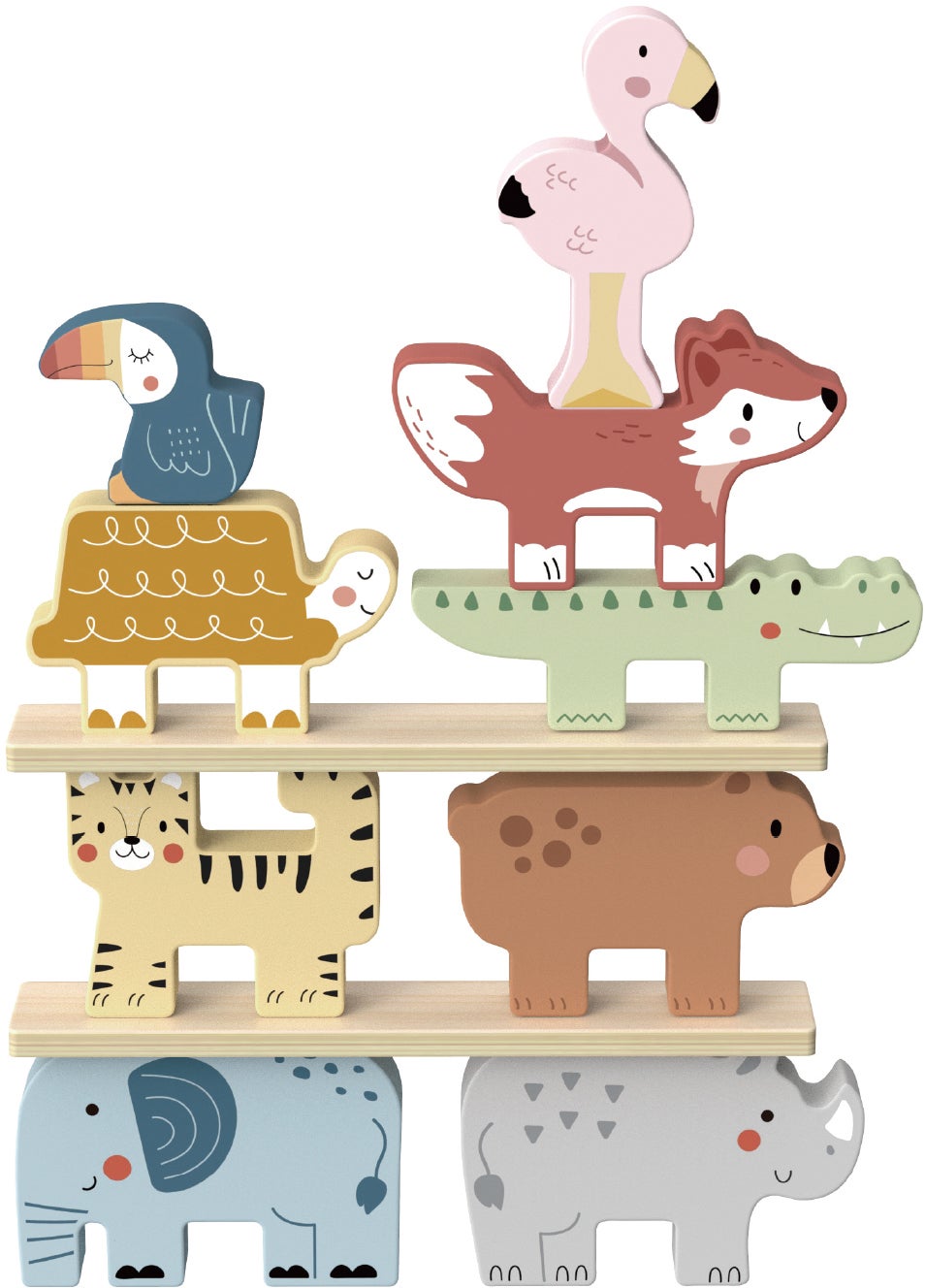 Tooky Toy er kendt for deres fokus på at skabe lærerige og engagerende legetøj, der ikke kun underholder, men også fremmer udviklingen hos børn. Med stabledyrene kan børnene øve sig i at stable og balancere, hvilket fremmer deres finmotorik og hånd-øje koordination.