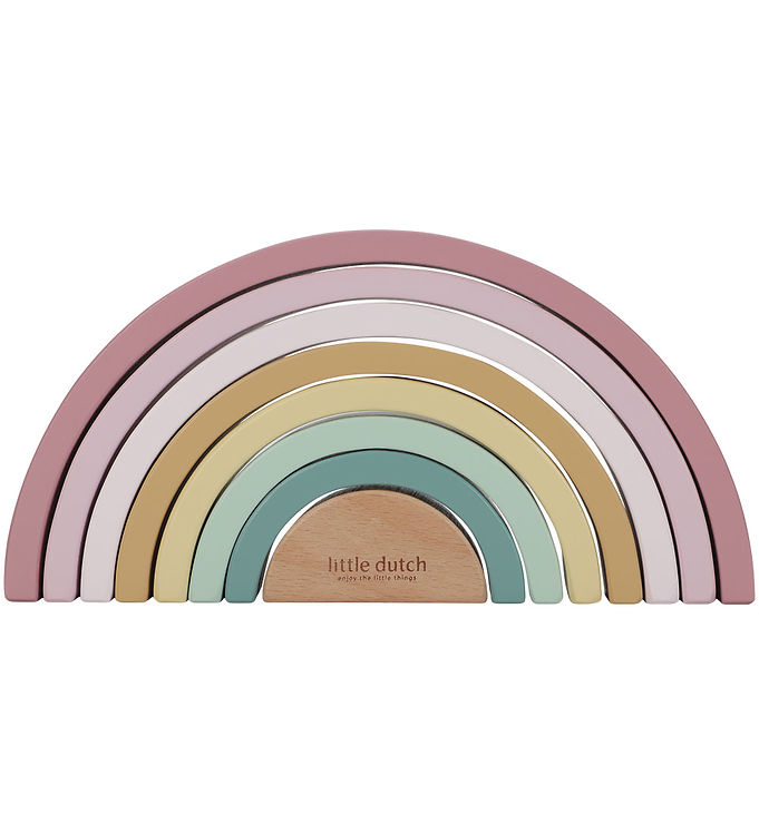 Med sin farverige og indbydende regnbue-design fanger den straks opmærksomheden hos både drenge og piger. Hver del er omhyggeligt lavet af Little Dutch, kendt for deres høje kvalitet og sikre materialer, så du kan være sikker på, at dit barn leger med et produkt, der er både sikkert og holdbart.