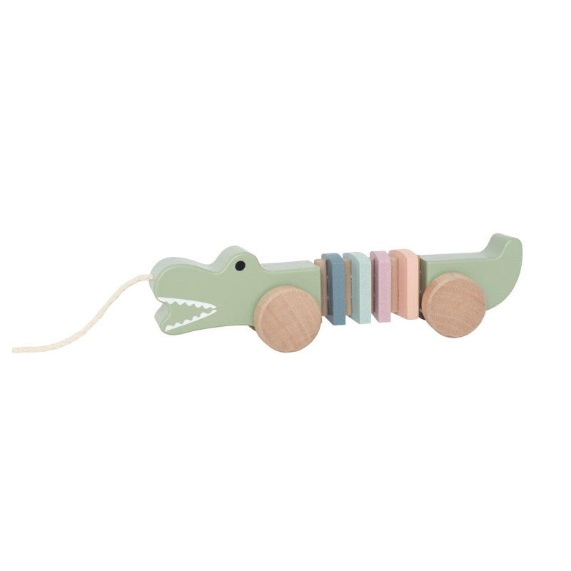 Træklegetøj fra Jabadabado, der forestiller en krokodille. Den er fremstillet af træ, har store hjul og en lang snor, så man kan trække den med sig. En hyggelig følgesvend, der er god at lege med. Anbefalet alder: Fra 1 år