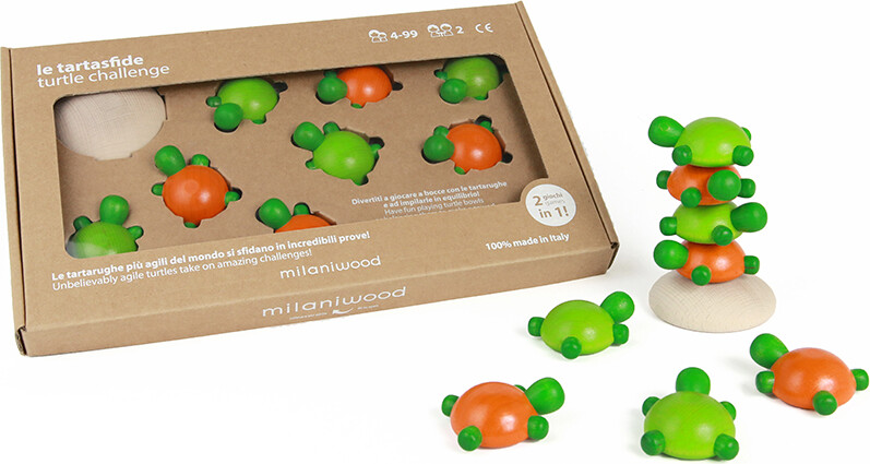 Milaniwood - Balancespil - Skildpadder er et fantastisk spil, der kombinerer sjov med læring. Dette balancespil er designet til at udfordre og underholde børn, samtidig med at det fremmer deres motoriske færdigheder og balance. Med skildpadderne som centrale figurer i spillet, vil børnene elske at stable dem og se, hvor mange de kan balancere uden at vælte.