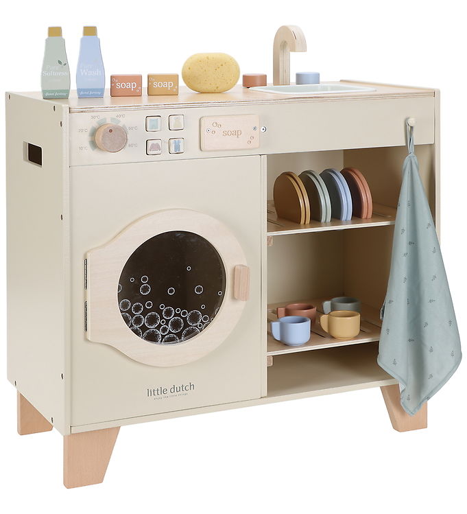 Uanset om det er til leg med venner eller til en sjov dag alene, vil denne vaskemaskine helt sikkert bringe glæde og læring til dit barn. Giv dit barn en gave, der stimulerer fantasi og kreativitet med Little Dutch Trævaskemaskin.