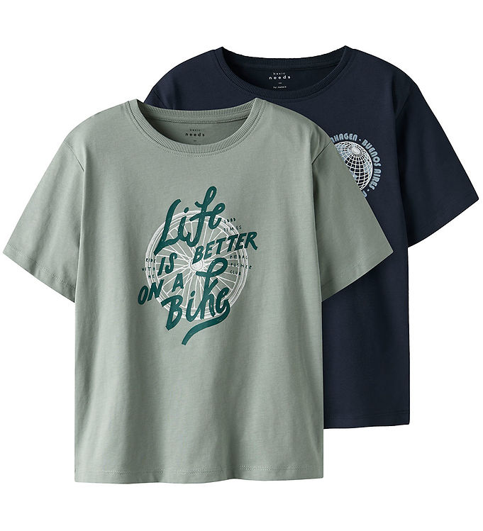 Name It T-shirt - NkmVagno - 2-pak - Slate Gray/Navy blazer