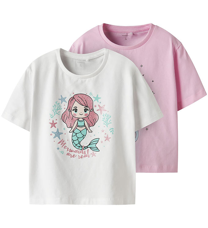 Name It T-shirt - NmfFrejane - 2-pak - Lucent White/Sweet Dreams