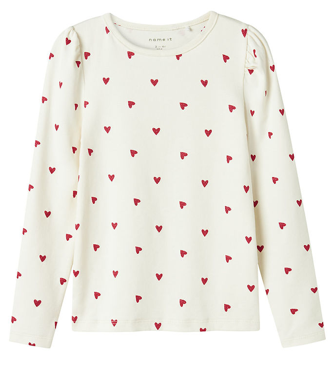 Name It Bluse - NmfDheart - Cloud Dancer m. Hjerter