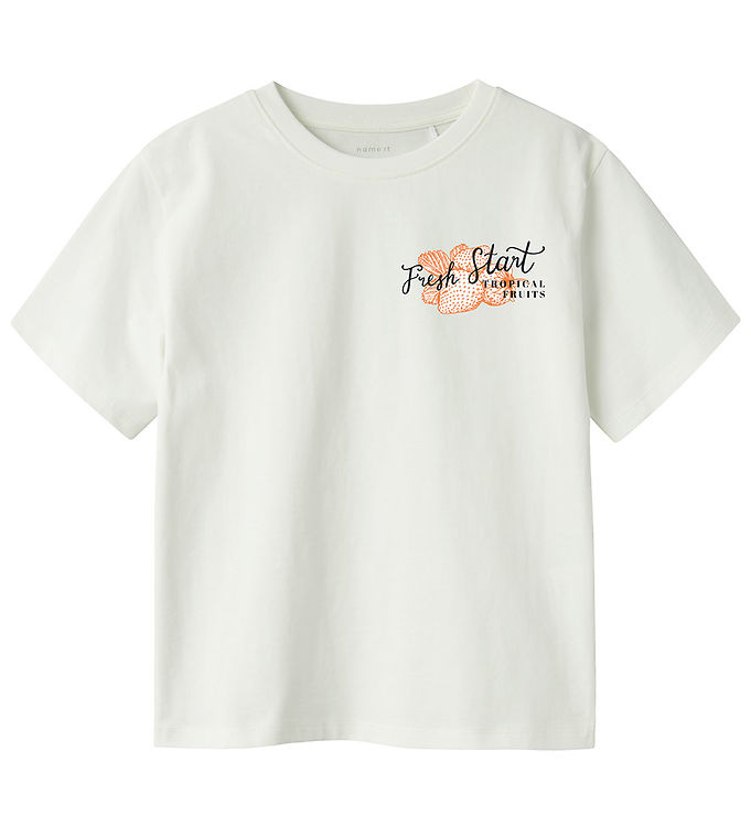 Name It T-shirt - NkfBoway - Cloud Dancer/RED ORANGE