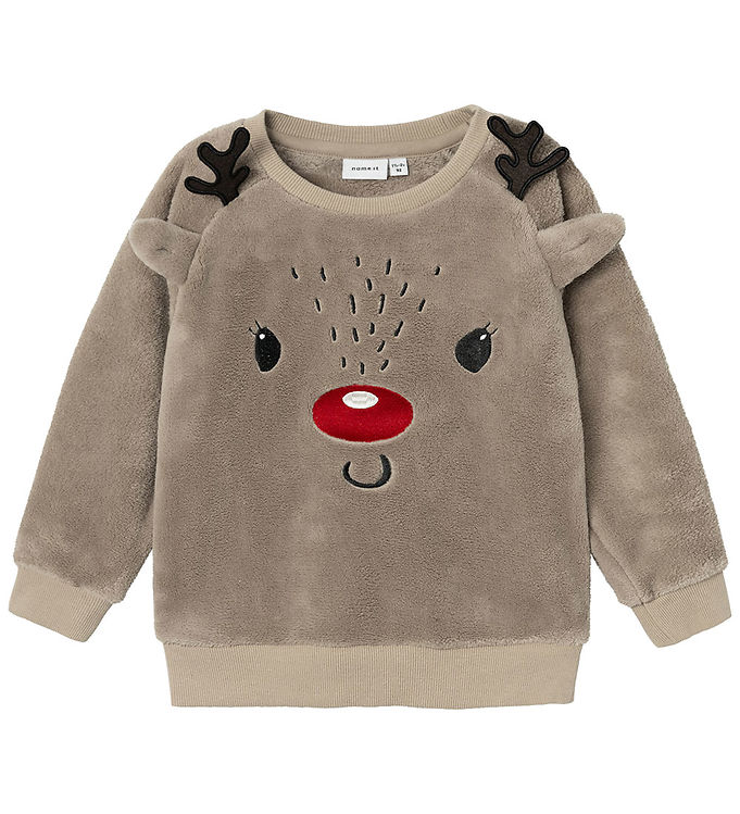 Name It Sweatshirt - Teddy - NmnReindeer - Weathered Teak