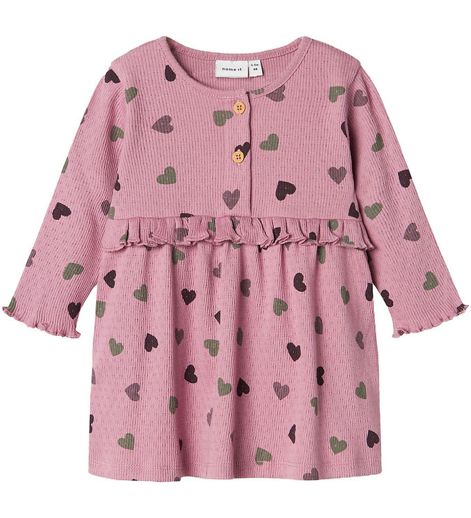 Name It Kjole - Rib - NbfNitte - Mauve Orchid m. Hjerter