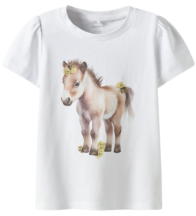 Name It T-shirt - NmfHani - Bright White m. Hest