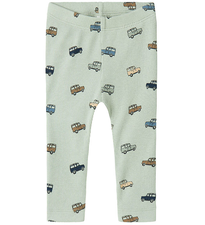 Name It Leggings - Rib - NbmHukab - Aqua Gray m. Biler