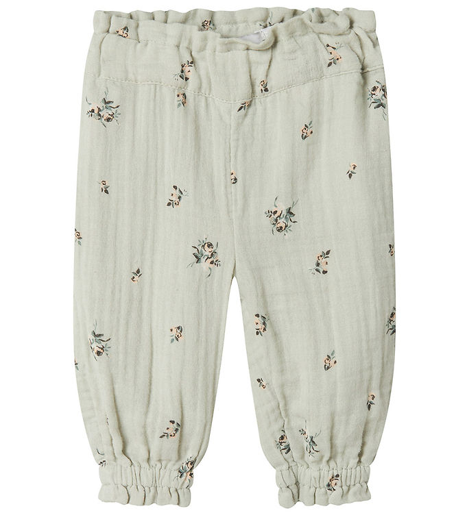 Name It Bukser - Musselin - NbfHikka - Aqua Gray m. Blomster
