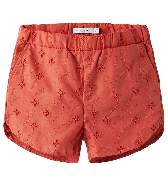 Name It Shorts - NmfVioleta - Spiced Coral m. Broderi Anglaise