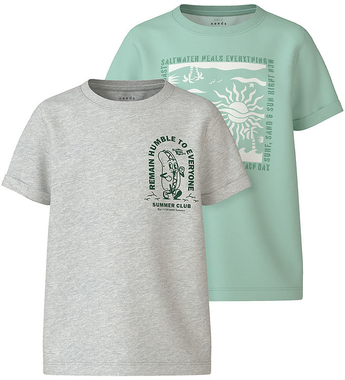Name It T-shirt - NkmVux - 2-Pak - Honeydew/Light Grey Melange