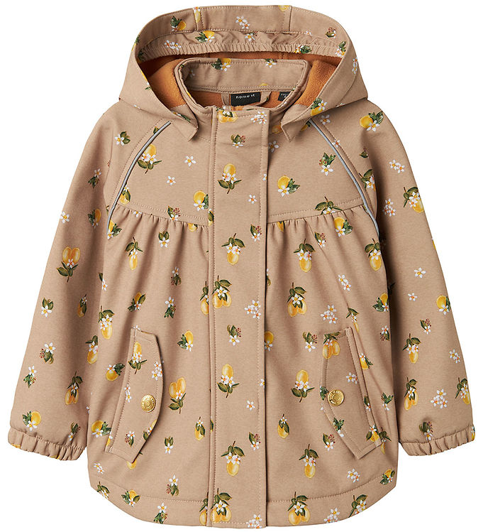 Name It Softshelljakke m. Fleece - NmfAlfa08 - Light Taupe/Lemon