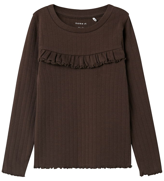 Name It Bluse - Rib - NmfLalla - Seal Brown m. Hulmønster