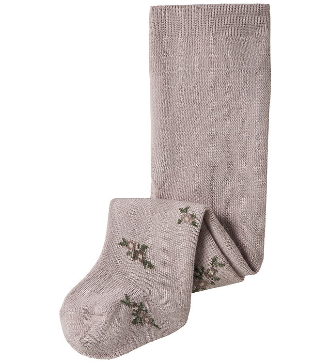 Name It Strømpebukser - Uld - NbfWak - Shadow Gray/Small flowers