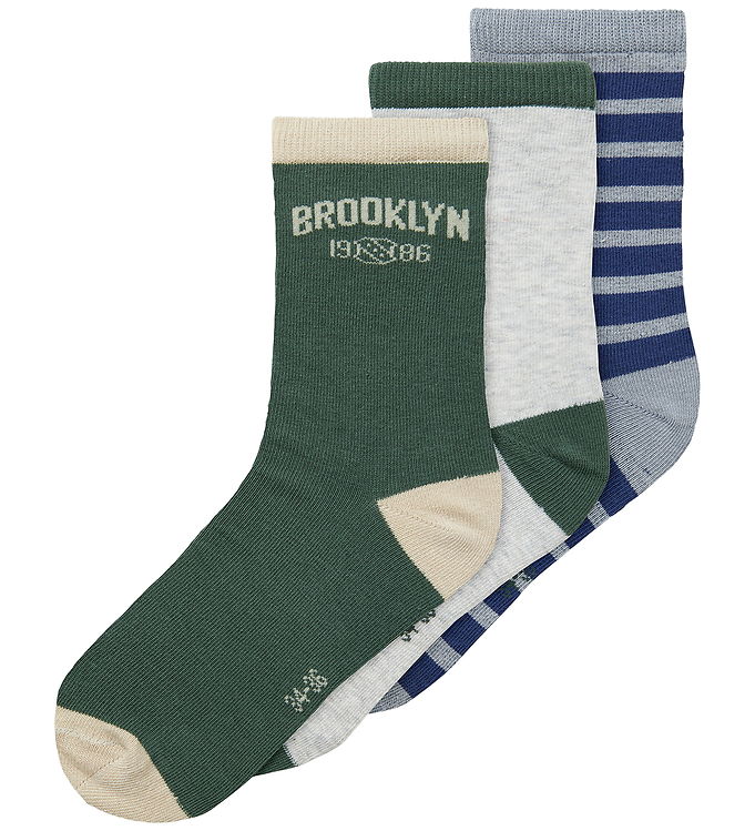 Name It Strømper - NkmNols - 3-pak - Grey Melange/Garden Topiary