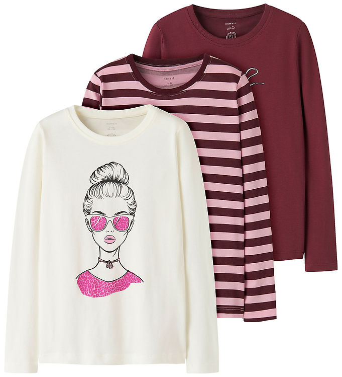 Name It Bluse - 3-pak - NkfNiana - Lilac Sachet/Lilac Stripe+Clo