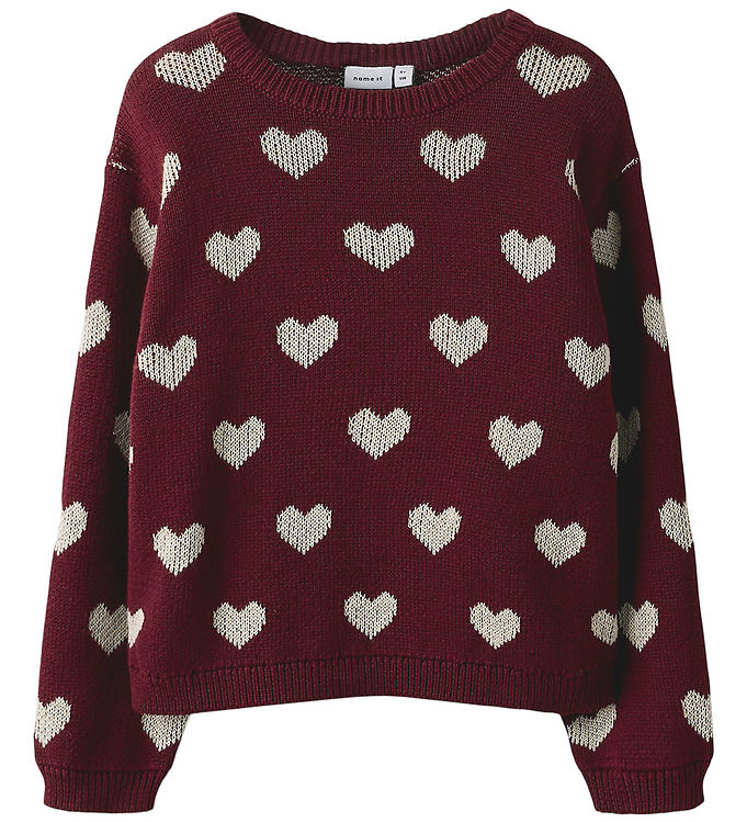 Name It Bluse - Strik - NmfOana - Burgundy/Peyote Heart