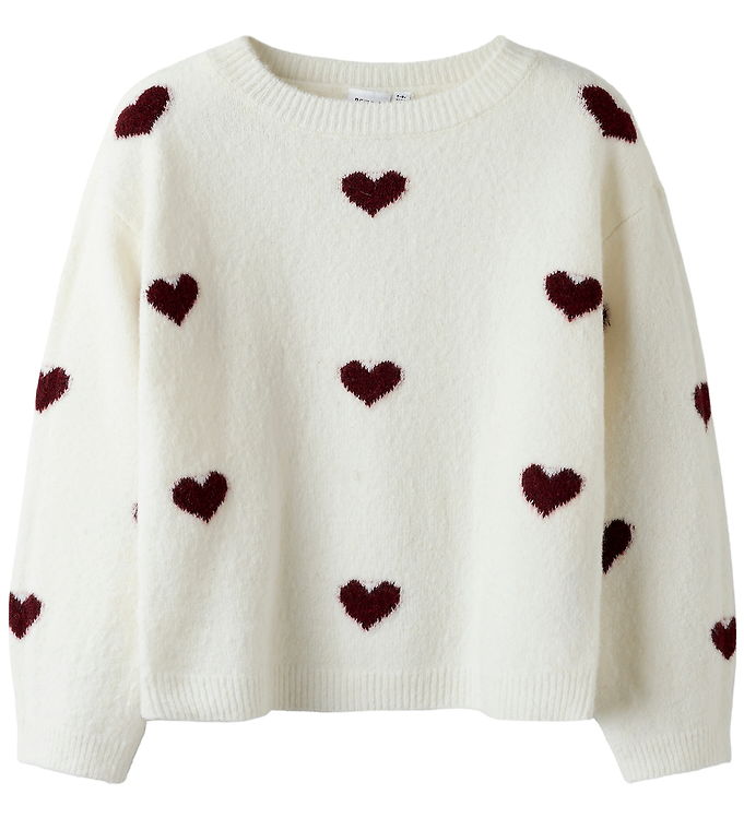Name It Bluse - Strik - NkfOna - Cloud Dancer/Burgundy Hearts
