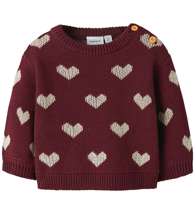 Nmae It Bluse - Strik - NbfOana - Burgundy/Peyote Heart