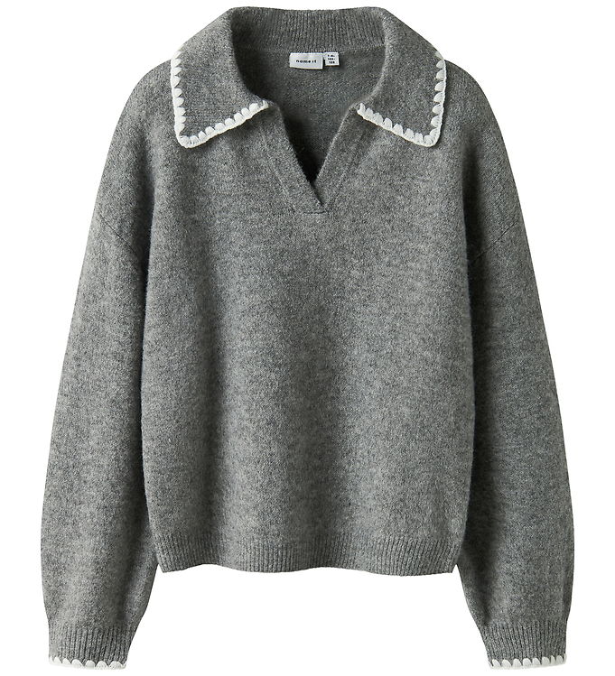 Name It Bluse - Polo Strik - NkfRikasa - Grey Melange