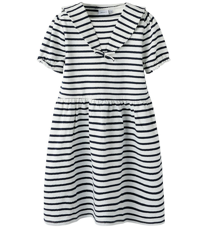 Name It Kjole - Rib - NmfKattie - Cloud Dancer/Sky Caprain