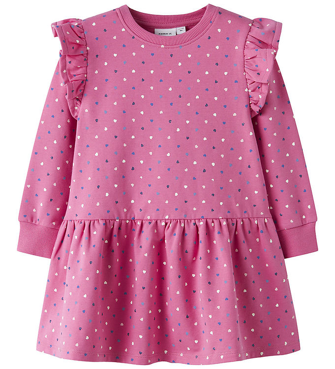 Forkæl dit barn med den fantastiske Name It Sweatkjole - NmfOeana - Pink Power. Denne farverige kjole kombinerer stil og komfort, hvilket gør den til et ideelt valg til både hverdag og festlige anledninger.