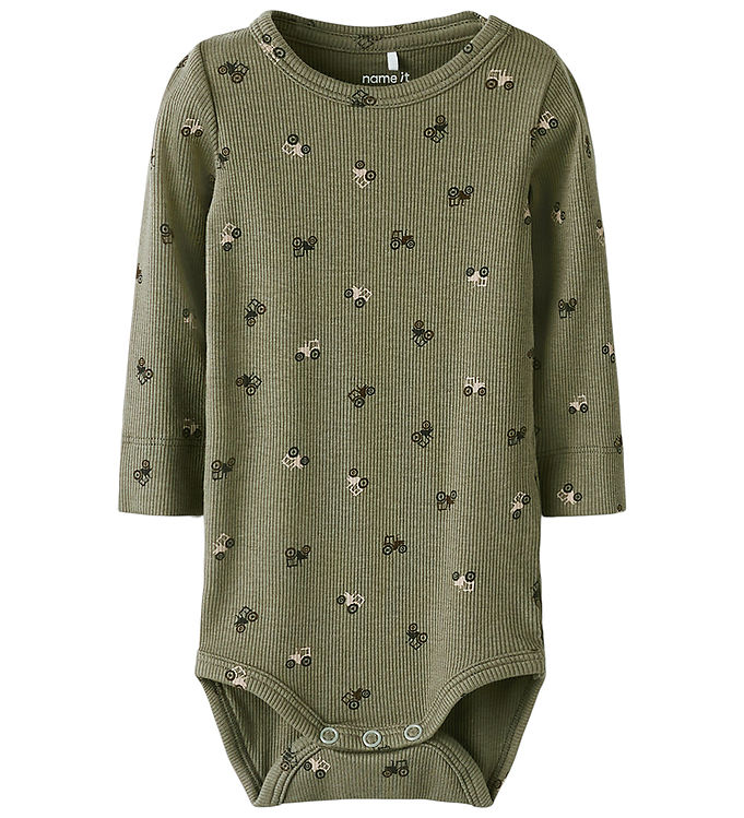 Forkæl dit barn med det skønne Name It Body l/æ - Rib - NbmNivan i en smuk dusty olive farve med print. Dette body er ikke kun stilfuldt, men også utroligt funktionelt og komfortabelt for dit lille barn.