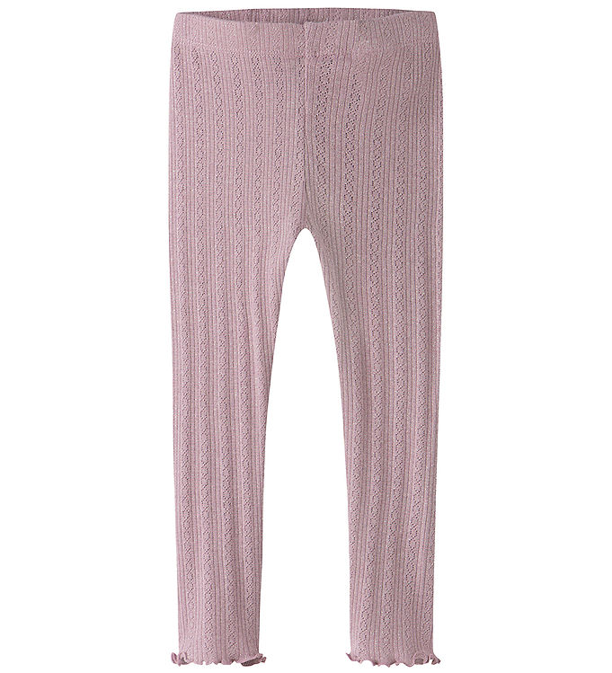 Disse Name It leggings med rib/hulmønster i farven Dawn Pink er den perfekte tilføjelse til dit barns garderobe. Designet med fokus på både stil og komfort, er disse leggings ideelle til hverdagens leg og aktivitet.