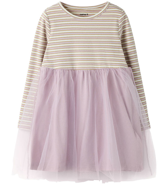 Name It Kjole - Rib/Tyl - NmfTaias - Dawn Pink/Cloud Dancer