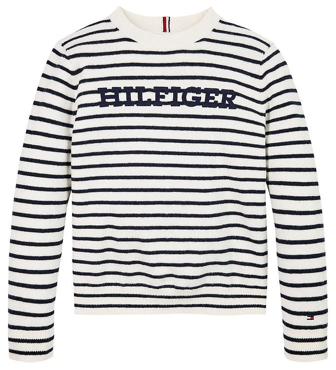 Tommy Hilfiger Bluse - Strik - Monotype - White Base/Blue Stripe