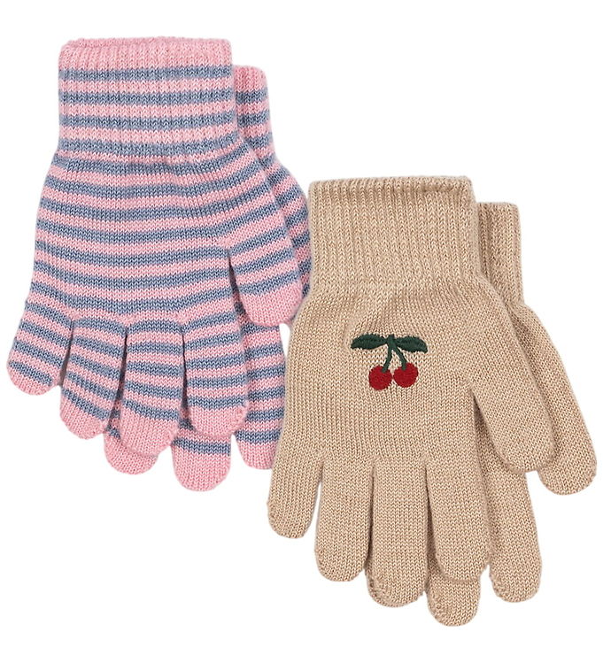 Konges Sløjd Hansker - Uld/Akryl - 2-pak - Cherry/Stripe