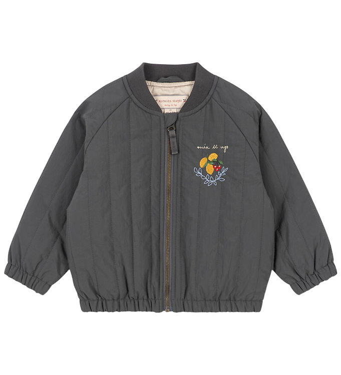 Konges Sløjd Termojakke - Juno i farven Magnet med et sødt frugtmotiv er det ideelle valg til de små i kolde vejrforhold. Denne termojakke kombinerer både funktionalitet og stil, og sikrer at dit barn holder sig varmt, mens de leger udenfor.