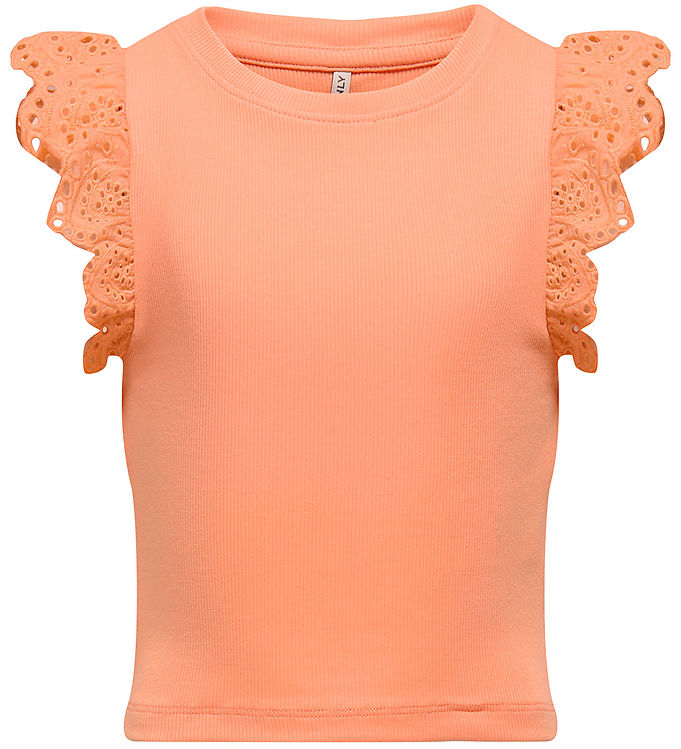 Kids Only Top - Rib - KogDrea - Salmon m. Broderi Anglaise