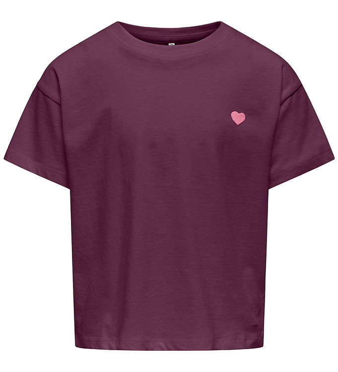 Kids Only T-shirt -KogMaiken - Mauve Wine/Heart Emb/Sea Pink