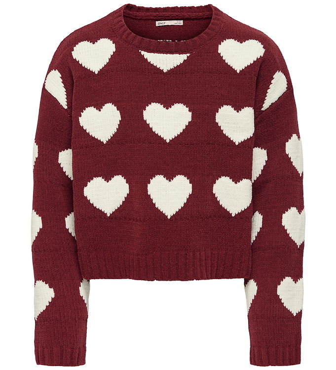 Kids Only Bluse - Strik - KogSus - Cabernet/Heart/Egret
