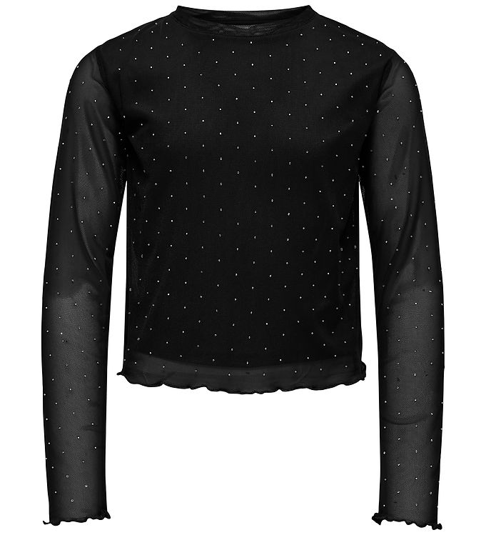 Kids Only Bluse - KogJada - Mesh - Black/Silver Rhinestones