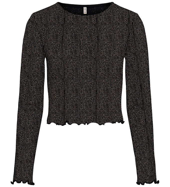 Forkæl dit barn med den stilige Kids Only Bluse - KogQueen i en elegant sort farve, prydet med smukke lurex rose gold striber. Denne bluse er det perfekte valg til både hverdag og fest, da den kombinerer komfort med et trendy udseende.