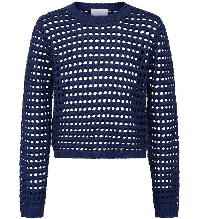 Grunt Bluse - Cropped - Strik - Pontinha - Mørkeblå m. Hulmønste